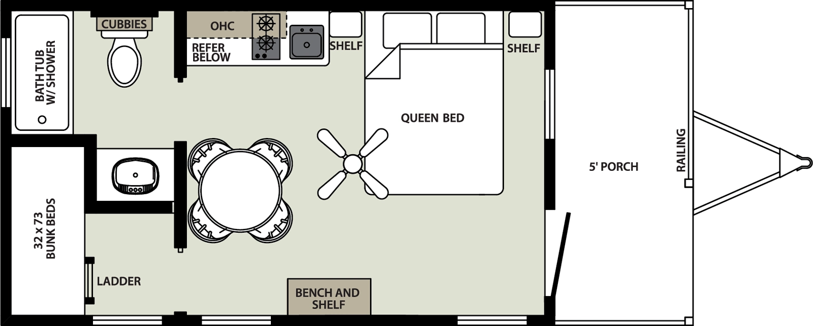 This 240 sq ft park cabin packs rugged quality into a compact footprint, offering a single bath and practical layout for outdoor lovers. The steel chassis, insulated walls, and durable siding help it stand up to the elements, while its efficient interior supports a simple, nature-driven lifestyle.