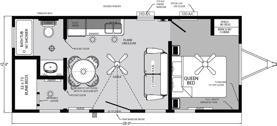 UVW (Unloaded Vehicle Weight)* – is the typical weight of the unit as manufactured at the factory. It includes all weight at the unit’s axle(s) and tongue or pin and LP Gas. The UVW does not include cargo, fresh potable water, additional optional equipment or dealer installed accessories.