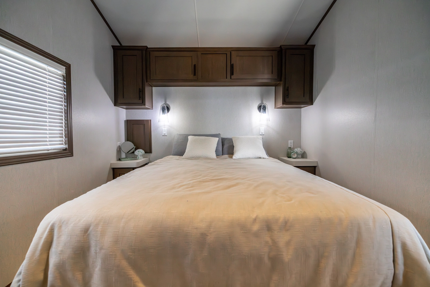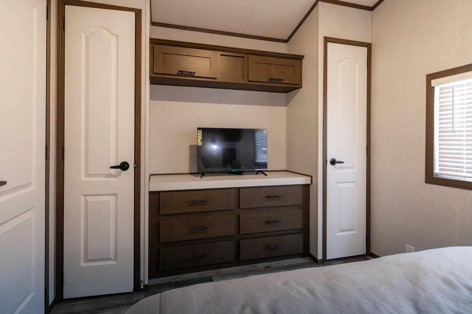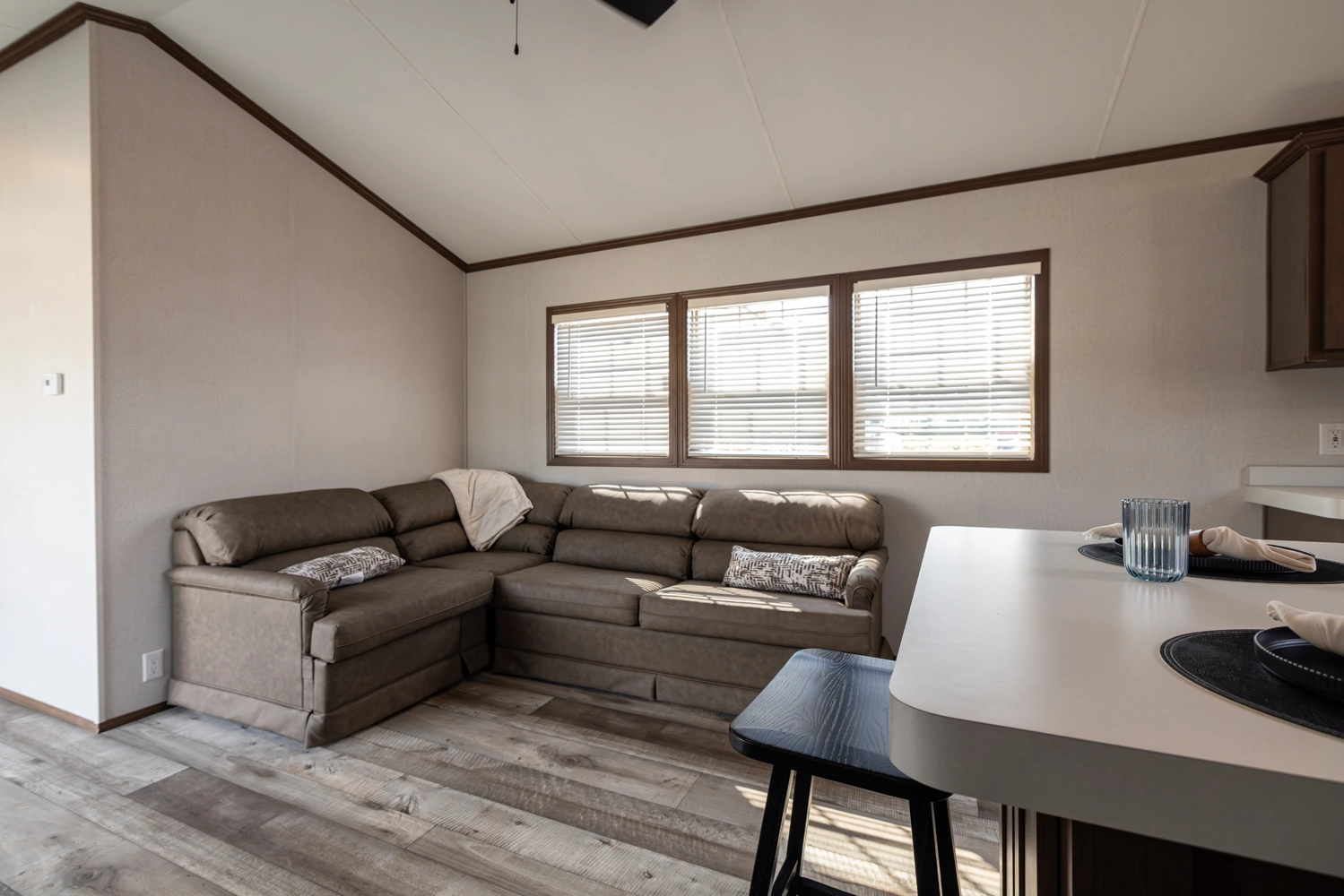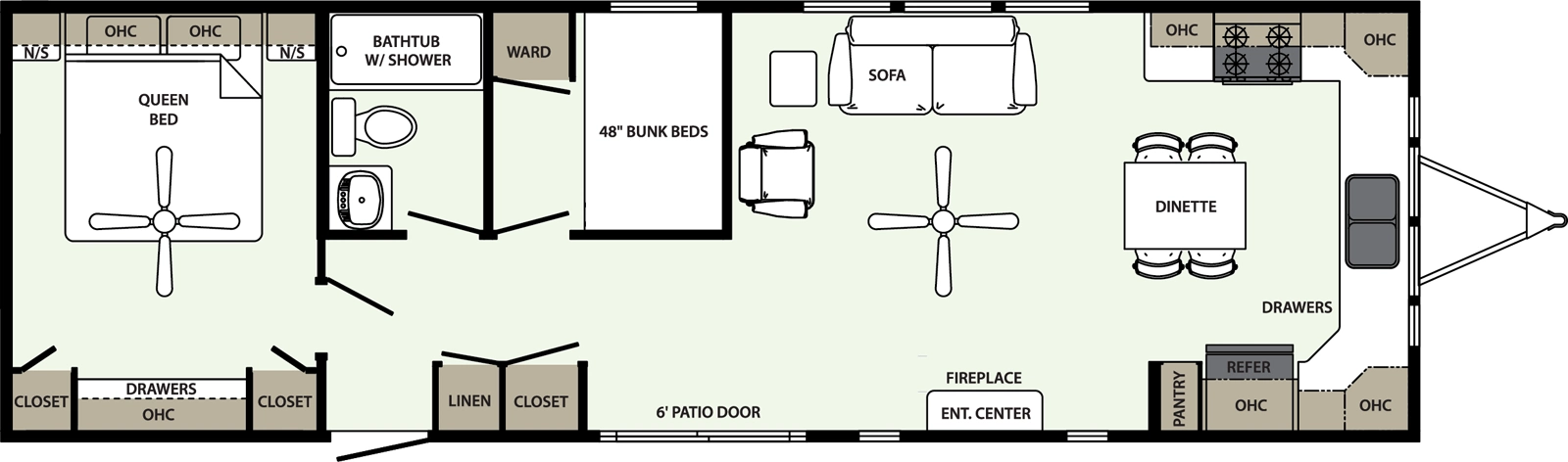 The 44FKBH-C spans 533 sq ft with a front kitchen, two bedrooms including bunks, and a dedicated living area. Its layout balances private and communal zones, while durable construction and solid insulation provide reliable comfort for seasonal stays at campgrounds.