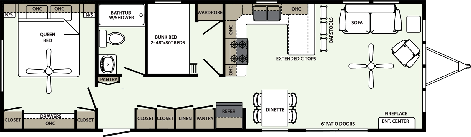 The 45-2B-C offers 533 sq ft with two separate bedrooms and a full bath. The split-room layout provides privacy, while durable construction and quality materials create a comfortable and reliable park model experience.