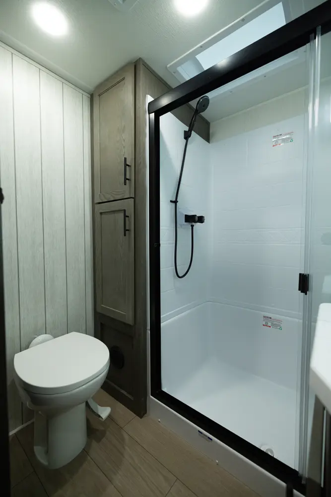 The Arctic Wolf 3250SUITE is perfect for couples and solo travelers alike with a spacious open concept design. The rear living room is flanked by big windows for natural light and the entertainment center doubles as a hidden pantry. In the modern island kitchen, you'll find two 10 cu. ft. refrigerators, 30" microwave, oven and a spacious dinette. Up front is a king size bed, full bathroom, sun bench and lots of great wardrobe space.