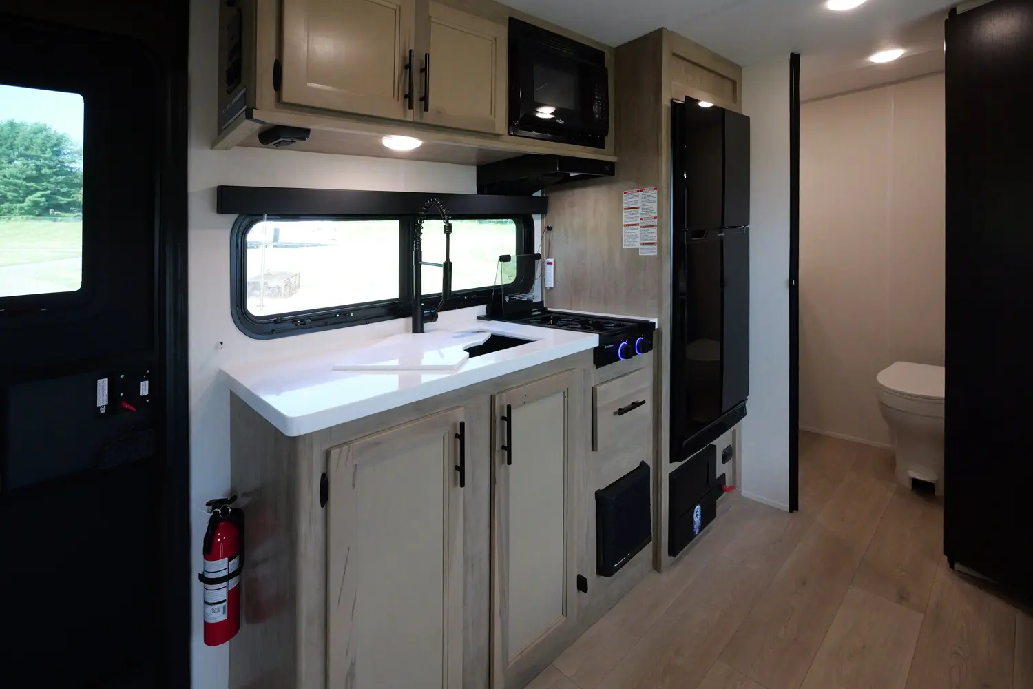 • Blackout Glass, Safety Slam, Friction Hinge Entry Door with Window and Shade Prep (N/A on LP models)