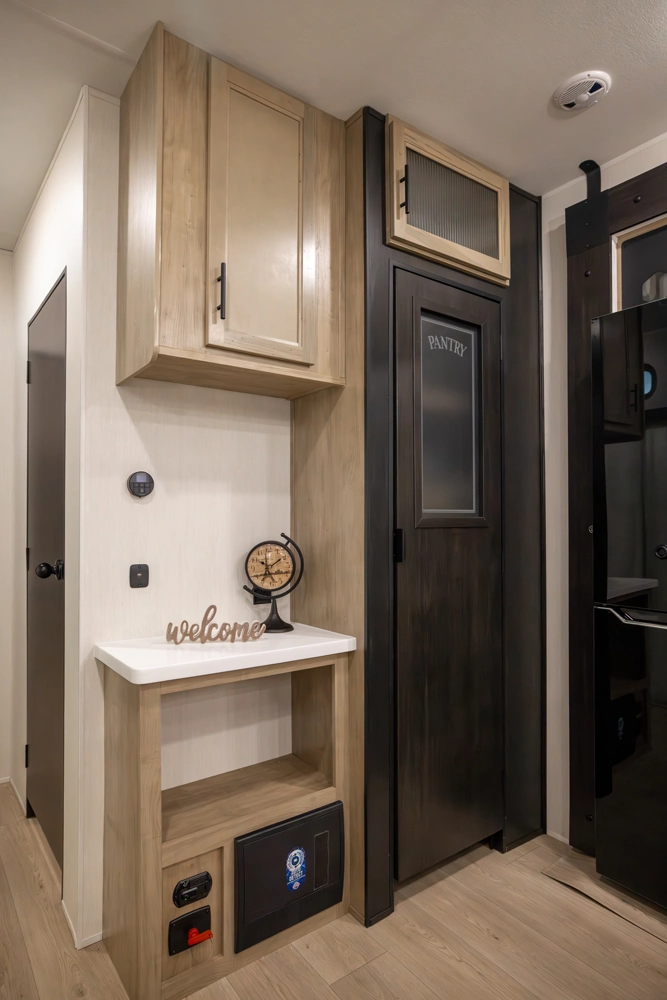 • Blackout Glass, Safety Slam, Friction Hinge Entry Door with Window and Shade Prep (N/A on LP models)