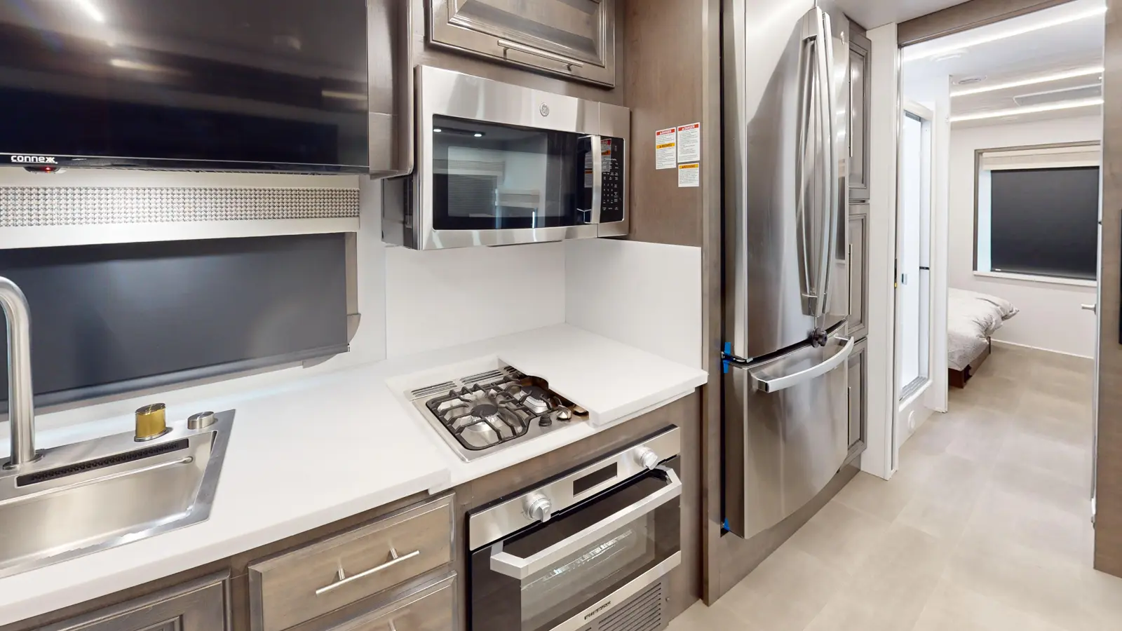 Our Georgetown 31X7 by Forest River is perfect for travelers looking for a compact and easy to drive motorhome coming in at 33ft 11in. The bedroom makes no sacrifices with a king size bed slide, washer/dryer prep and lots of wardrobe space. You also still get a full bathroom with the shower split making it convenient for your partner to shower while you get ready by the sink. There's also plenty of seating up front for guests and the dinette converts into a bed for occasional guests!