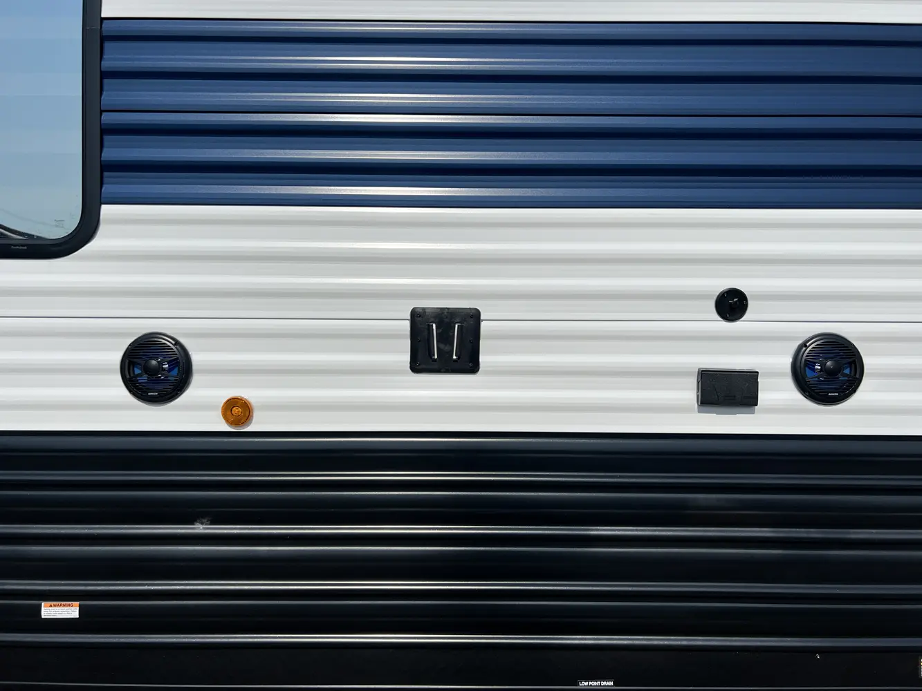 The Cherokee Grey Wolf 27LH by Forest River is a stylish and functional travel trailer with a focus on affordability, perfect for modern camping. Despite its compact 33-foot, 6-inch length, the 27LH feels incredibly spacious, thanks to its residential-style sofa and large windows that flood the interior with natural light. The bedroom is also impressive with a king size bed and plenty of wardrobe space.