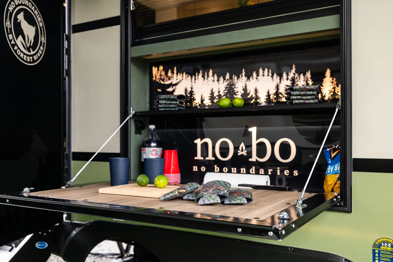 The NB19.0 is a feature-packed travel trailer built for comfort and adventure. Its rear kitchen offers ample counter space and storage, while a walk-through bath connects to a private front bedroom with a queen bed and wardrobes. Outside, the Trailgate Outdoor Bar adds space for outdoor entertaining and meal prep. With a roomy slide-out and lightweight, all-season build, the NB19.0 delivers big comfort in a perfectly towable package.