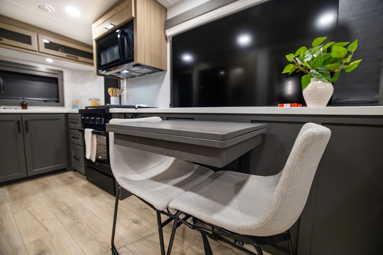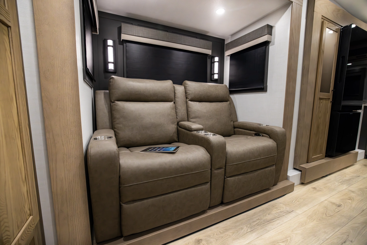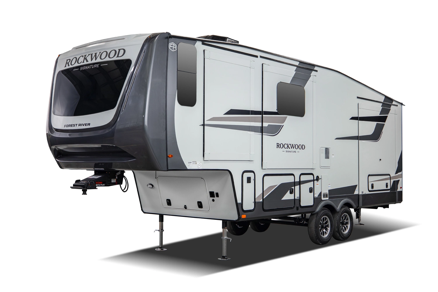 Experience the spacious and smart design of the Rockwood 290SFK fifth wheel. This full profile floor plan features a versatile front kitchen with 86" interior height, abundant counter space and storage, a comfortable living area with theater seating and entertainment center, in a private king size bedroom. With slide outs to expand your space, residential-style comforts throughout, and quality construction, the 290SFK makes every trip relaxing and enjoyable.
