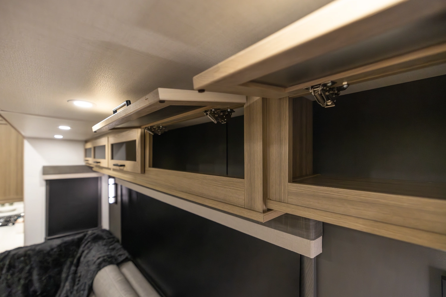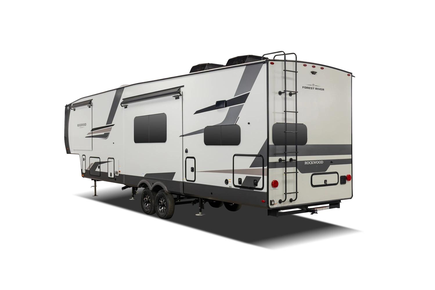 This 101" Wide Body fifth wheel is a rear kitchen layout features expansive counter space, residential style appliances, and abundant storage, making it ideal for those who love to cook while traveling. The mid living area features an L-shaped sofa with an integrated Hide-a-bed and 52" theater seat that requires no dismantling when the slides are retracted. Up front you have a private bedroom with a king bed and generous wardrobe space that is Washer/Dryer ready!